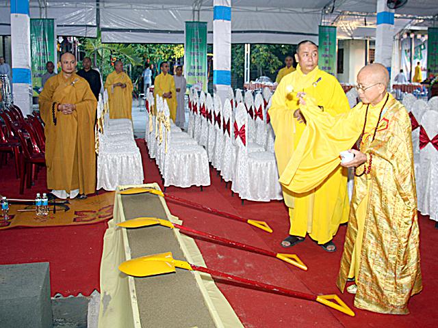 Tiếp theo là phần Nghi lễ cầu nguyện Đặt đá và rót đồng dưới sự chứng minh hộ niệm của Chư Tôn giáo phẩm và quý vị khách quý cùng đông đảo Phật tử các giới.