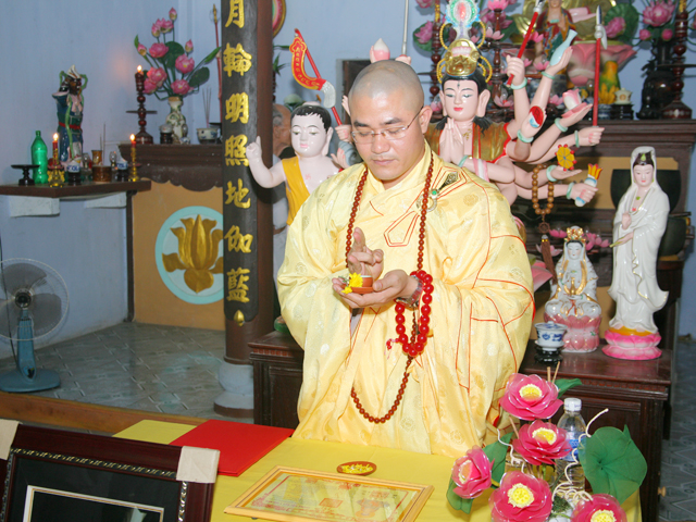 Đại đức chứng minh niêm hương cử hành nghi thức cầu nguyện
