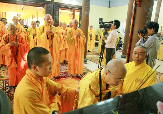 Trong không khí trang nghiêm thanh tịnh, Trưởng lão Hòa thượng Thích Đức Phương đã niệm hương bạch Phật cầu nguyện; chư tôn đức chứng minh cùng quý quan khách đồng dâng hương thành tâm cầu Phật gia hộ, kính nguyện Phật nhật tăng huy, pháp luân thường chuyển, thiền môn hưng thịnh, hải chúng an hòa, phong điều vũ thuận, quốc thái dân an, Phật sự viên thành.