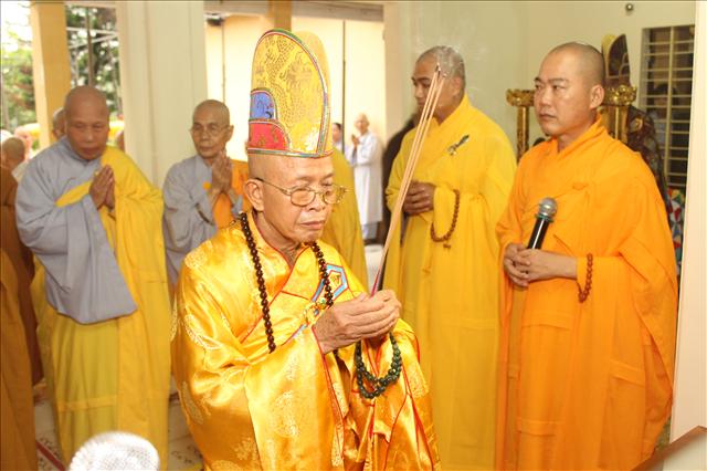 HT. Thích Lưu Hòa niêm hương bạch Phật