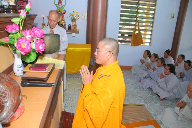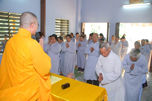 Sau bài Pháp thoại để cho quý đạo hữu Phật tử hiểu rõ hơn về Qui y Tam bảo, Đại đức đã cử hành nghi lễ Quy y theo như đúng chánh pháp. Dưới sự hướng dẫn của đại đức, đạo hữu Phật tử đã phát lồ sám hối cho ba nghiệp thân, khẩu, ý thanh tịnh, chí thành phát nguyện Quy y Tam Bảo và thọ trì 5 giới cùng 7 điều nguyện.