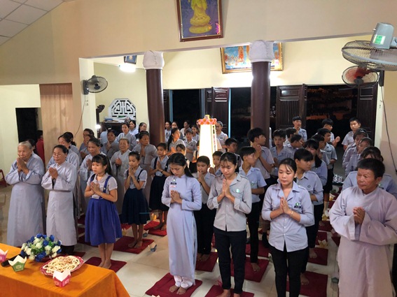 Trong không khí trang nghiêm tại Bảo điện Niệm Phật đường Đại đức chứng minh đã niệm hương bạch Phật và cử hành nghi lễ truyền ánh ssng vô tận đăng đến quý Đạo hữu và GĐPT An Thành trong sự sâu lắng thanh tịnh.