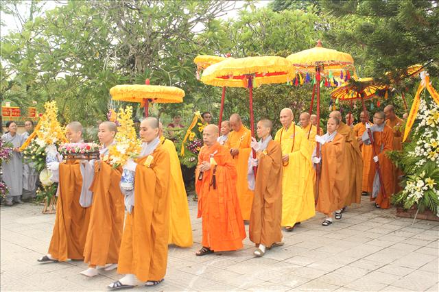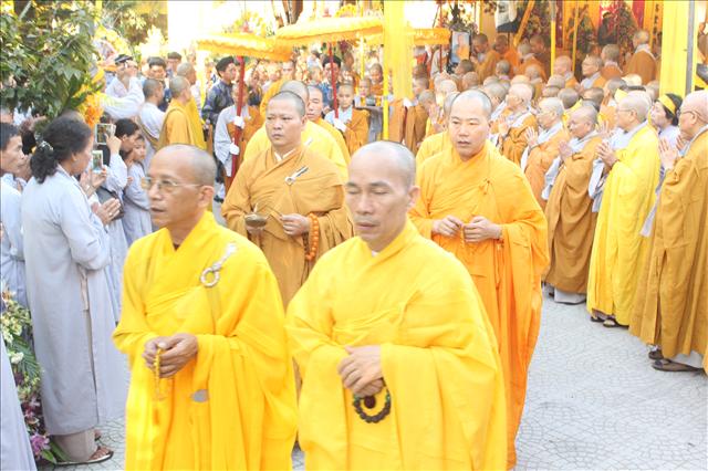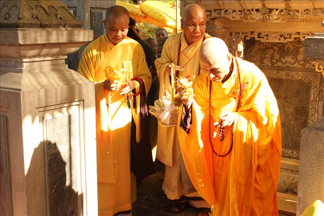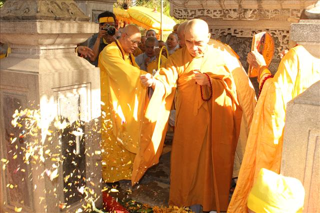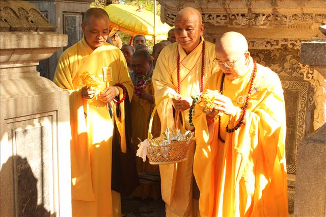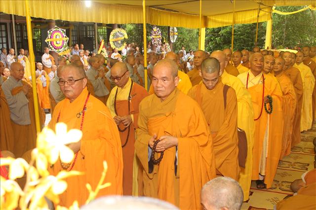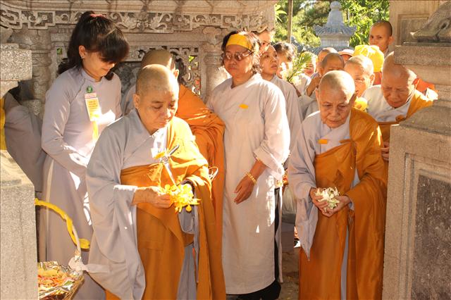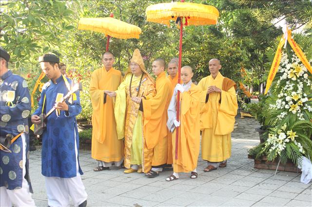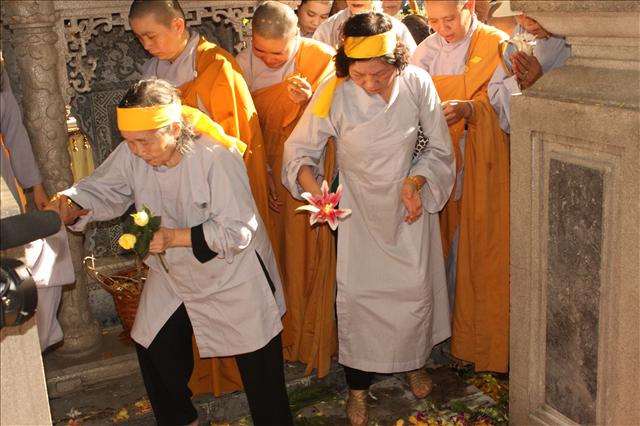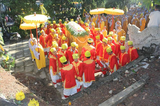 Sáng nay, vào lúc 5 giờ 15 ngày 31.07.2014 (05.06 Giáp Ngọ) lễ cung tống kim quan cố Ni trưởng nhập bảo tháp đã diễn ra trang nghiêm trọng thể.