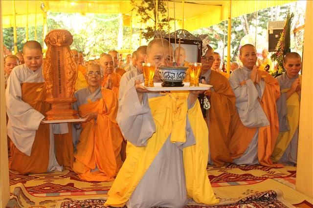 Buổi lễ diễn ra trang nghiêm với những nghi lễ truyền thống như Lễ Phát hành (Khiển điện), Lễ Truy niệm. Ni trưởng Thích Nữ Diệu Tấn, Giáo phẩm Chứng minh Phân Ban Ni giới tỉnh TT. Huế cung tuyên tiểu sử cố Ni trưởng, tiếp đó, Ni trưởng Thích Nữ Thanh Hương đọc điếu văn của Phân Ban Ni giới tỉnh TƯ; Ni trưởng Thích Nữ Như Minh đọc lời cảm tạ của Ban Tổ chức và Môn đồ Pháp quyến.
