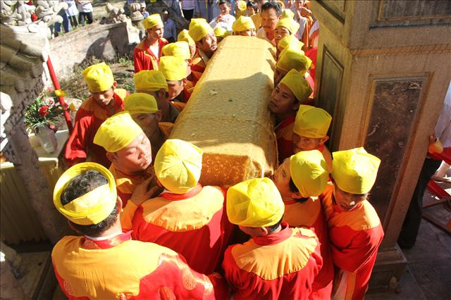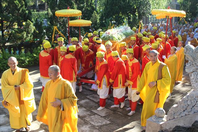 Hôm nay ngày 05.07 Giáp Ngọ (Thứ Năm, 31.07.2014) lễ thỉnh Kim quan nhập bảo tháp trang nghiêm trọng thể.