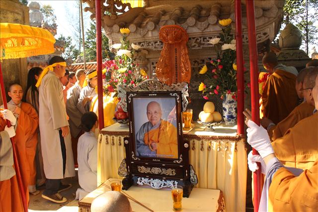 Buỗi lễ đặt dưới sự Chứng minh của Trưởng lão Hòa thượng Thích Đức Phương, Phó Pháp chủ HĐCM GHPGVN, Trưởng Ban Trị sự GHPGVN tỉnh Thừa Thiên Huế; HT. Thích Chơn Tế, Giáo phẩm Chứng minh BTS GHPGVN tỉnh TT Huế, Trưởng Ban Điều hành Môn phái Tường Vân Huế; HT. Thích Lưu Hòa, Giáo phẩm Chứng minh BTS GHPGVN tỉnh TT Huế; chư Tôn Hòa thượng Giáo phẩm chứng minh Ban Trị sự, chư Tôn đức Thường trực Ban Trị sự, các ban ngành, các Ban Trị sự huyện thị, các Tổ đình tự viện cùng đông đảo Phật tử các giới trong và ngoài tỉnh đã quang lâm chứng minh và cung tiễn kim quan cố Ni trưởng nhập bảo tháp.