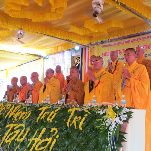 Quang lâm Chứng minh, tham dự lễ có HT. Thích Hải Ấn, UVTT HĐTS GHPGVN, Giáo phẩm Chứng minh BTS GHPGVN tỉnh TT. Huế, Viện trưởng Học viện Phật giáo Việt Nam tại Huế; HT. Thích Phước Minh, Phó Trưởng Ban Trị sự kiêm Trưởng Ban Giáo dục Phật giáo GHPGVN tỉnh TT. Huế; HT. Thích Toàn Thiệt, Giáo phẩm Chứng minh BTS GHPGVN huyện Quảng Điền; HT. Thích Hạnh Trí, Giáo phẩm Chứng minh BTS GHPGVN huyện Phú Lộc; TT. Thích Thường Chiếu, Trưởng Ban HDPT GHPGVN tỉnh TT. Huế; Đ Đ. Thích Quang Tư, Phó Thư ký kiêm Chánh Văn phòng BTS GHPGVN tỉnh TT. Huế; ĐĐ. Thích Hải Đức, Trưởng BTS GHPGVN huyện Quảng Điền; NT. Thích Nữ Chơn Hiền, Giáo phẩm Chứng minh Phân ban Ni giới TƯ; NT. Thích Nữ Hải Thành, Phó Trưởng Phân ban Ni giới TƯ (Bổn sư của Sư cô Hoàn Thục); NT. Thích Nữ Minh Nguyên, Trưởng Phân ban Ni giới tỉnh TT. Huế; chư Tôn đức Thường trực BTS GHPGVN tỉnh TT. Huế; chư tôn đức Tăng Ni các Tự viện, Niệm Phật đường các huyện thị xã và huyện Quảng Điền cùng đông đảo quý Đạo hữu Phật tử thiện tín xa gần trên địa bàn tỉnh TT. Huế.