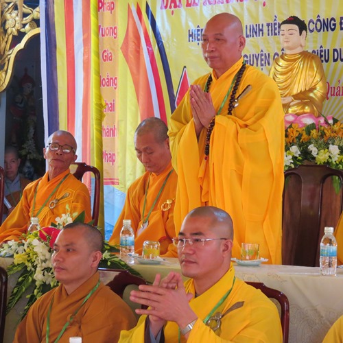 ĐĐ. Thích Tịnh Thường, Phó Trưởng ban thường trực BTS GHPGVN huyện Quảng Điền phát biểu khai mạc.