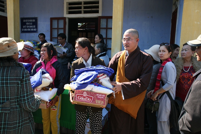 Sáng ngày 29/01/2016, Thượng tọa Thích Tâm Hậu, trú trì chùa Phước Ninh – Tp. Đà Nẵng và chư Tôn đức, quý Phật tử hảo tâm đã đến thăm và tặng 300 phần quà tết cho bà con đồng bào dân tộc thiểu số có hoàn cảnh khó khăn tại thôn Ta Lo, xã Hồng Vân, huyện A Lưới, giúp bà con nơi đây có thêm điều kiện vui xuân đón tết cổ truyền Bính Thân của Dân tộc.