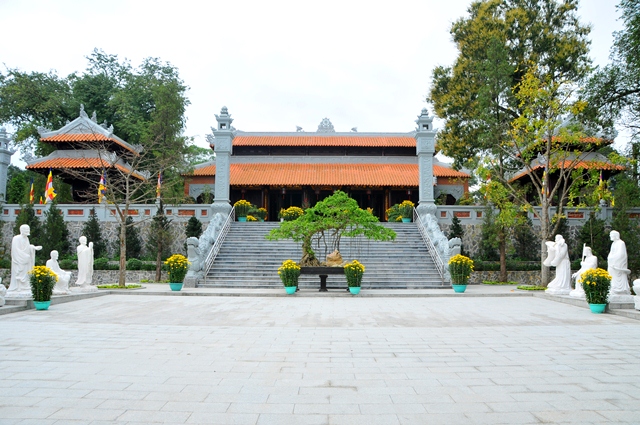 Trước thời khắc Tết Nguyên đán Ất Mùi, từ các khu vực tại Tổ đình Tường Vân đều rực đỏ màu cờ, băng-rôn, chúc mừng năm mới.
