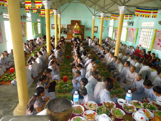 Đại đức Thích Tâm Phương – Chánh Đại diện Phật giáo huyện A Lưới cùng Chư Tôn đức Tăng Ni trong Ban Đại diện đã đến hướng dẫn cho bà con dân tộc thiểu số anh em trong một ngày một đêm. Đại đức đã thuyết giảng về đề tài: “Lợi ích của sự tu tập” và hướng dẫn đạo tràng dùng cơm chánh niệm cũng như lạy sám hối, kinh hành niệm Phật. Đạo tràng đã thực hành rất trang nghiêm theo sự hướng dẫn của Chư Tôn thiền đức Tăng Ni trong Ban Đại diện. Nhìn hình ảnh của các mẹ, các cô trong chiếc áo tràng lam thật đáng trân trọng, đáng kính, lại thêm những chị những em vẫn trang phục truyền thống của đồng bào dân tộc mình làm cho đạo tràng đủ các màu sắc của các dân tộc thiểu số anh em. Như lời Đức Phật đã dạy: Tất cả chúng sanh đều có Phật tánh, ai cũng nước mắt cùng mặn, máu cùng đỏ,… Do vậy, không phân biệt giai cấp, dân tộc, chủng tộc,…