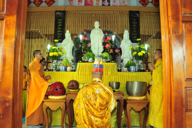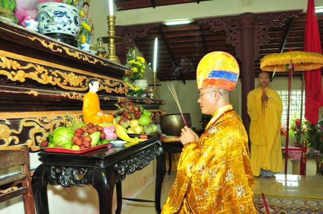 Sau phần niệm hương bạch Phật của Đại đức Trưởng Ban Trị sự, Đại đức Thích Hương Định, Trưởng Ban Nghi lễ GHPGVN huyện A Lưới cử hành pháp sự trang nghiêm trọng thể.