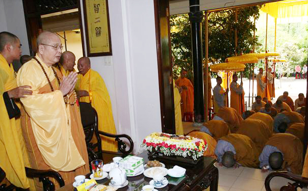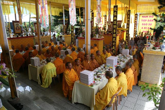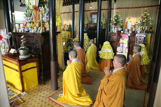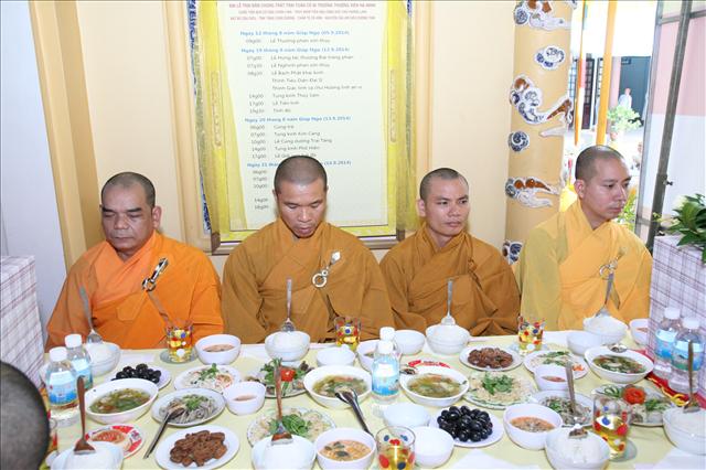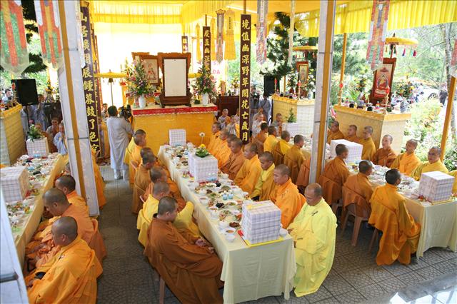 Thực hiện tấm lòng tri ân và báo ân của người con Phật. Chúng con và môn đồ pháp quyến, thừa hành nghiêm huấn, thuận chúc bảo uy, nguyện noi gương sáng của Ni trưởng hoà mình trong chánh Pháp, để đi suốt đoạn đường thượng cầu Phật đạo, hạ hoá chúng sinh mà Cố Ni trưởng của chúng con đã thể hiện khi sanh tiền. Để đền đáp ân đức của Cố Ni trưởng, hôm nay toàn thể môn đồ pháp quyến chúng con, tâm đồng ý hiệp, hoà hợp cùng nhau thành tâm đốt nén tâm hương ngũ phần, dâng nước Bát Nhã trắng trong, lấy nước lục hoà rửa tay thanh tịnh, thành tâm thiết lễ trai tăng kính dâng lên cúng dường mười phương Tam Bảo và hiện tiền chư Tôn Hoà thượng, Thượng tọa, Đại đức Tăng, quý Ni trưởng, Ni sư, chư Tôn đức Ni, chúng con xin hồi hướng công đức cúng dường này cầu nguyện cho Giác linh Cố Ni trưởng chúng con cao đăng Phật quốc, hồi nhập Ta bà, độ tận hàm linh, đúng như bản hoài của chư Phật.