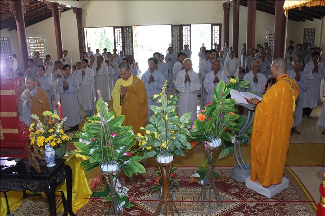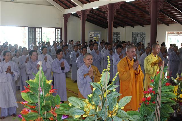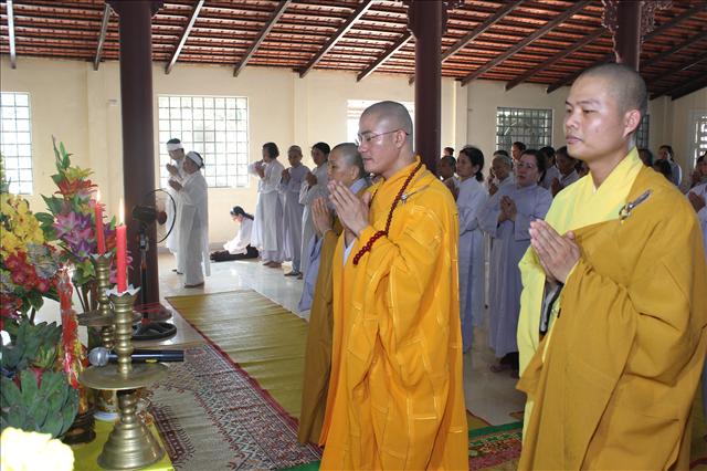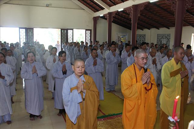 Tiếp đó là Phần nghi lễ, toàn thể Đạo tràng đồng niệm hồng danh Đức Phật A Di Đà và tứ hoằng thệ nguyện, hồi hướng cảm tạ và đồng bào Phật tử các giới tùy nghi lễ bái.