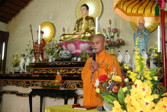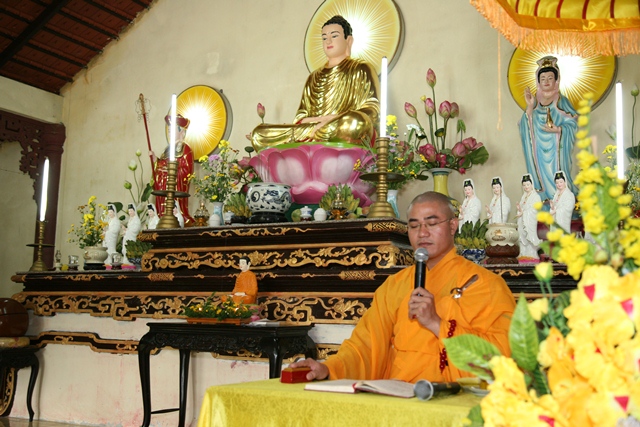08 giờ, Ban Nghi lễ cung thỉnh Đại đức Trưởng Ban Trị sự quang lâm chứng minh khai khoá và thuyết giới, theo chương trình tu học của Đạo hữu Phật tử, sáng nay là buổi pháp thoại về đề tài "Người Phật tử ăn chay thế nào mới đúng pháp" do Đại đức Thích Thiền Tâm, UV BTS, Trưởng Ban Hướng dẫn Phật tử chủ trì thuyết giảng.