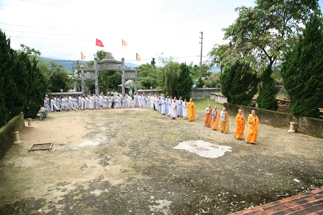 Quang lâm chứng minh khai khoá có chư Tôn đức Thường trực Ban Trị sự GHPGVN huyện A Lưới cùng quý Phật tử tại thành phố Huế tháp tùng về tham dự khoá tu một ngày an lạc lần thứ 9 năm Giáp Ngọ.