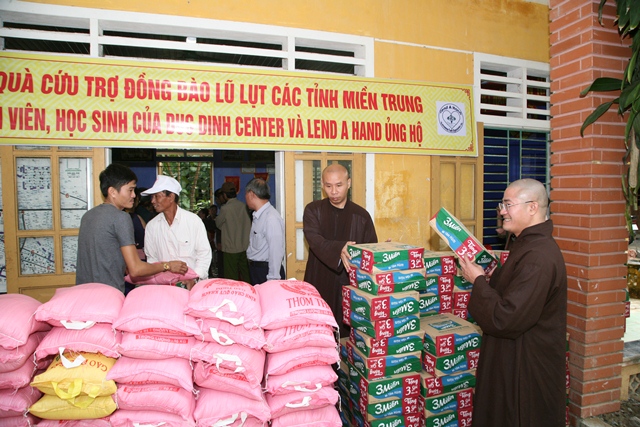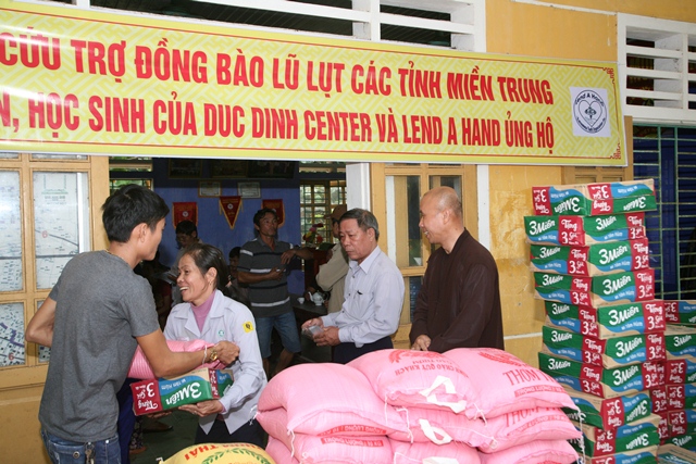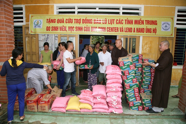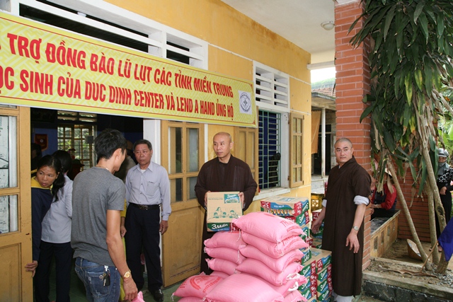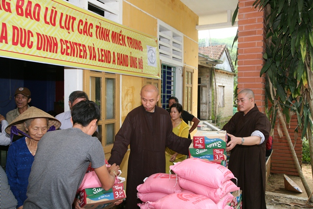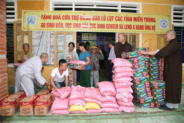 Ban Trị sự và bà con đồng bào các tỉnh Miền Trung chân thành niệm ân Phật tử Đinh Trọng Đức và các sinh viên, học sinh của Duc Dinh Center hiện trú tại Mỹ đã giúp đỡ kịp thời đến bà con vùng bão lũ tại 8 huyện thị xã của tỉnh Thừa Thiên Huế: Phong Điền, Quảng Điền, Hương Trà, Hương Thuỷ, Phú Vang, Phú Lộc, Nam Đông và A Lưới. Phật tử Đinh Trọng Đức luôn đồng hành các chương trình thiện nguyện cùng chư Tôn đức không những tại Huế mà tất cả các tỉnh thành trong cả nước trong nhiều năm qua.
