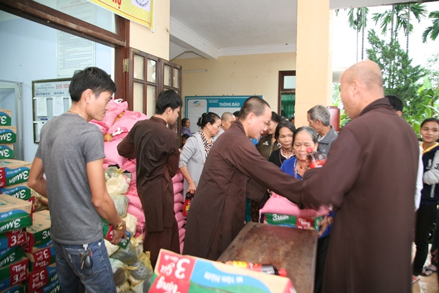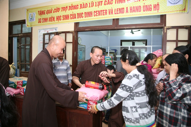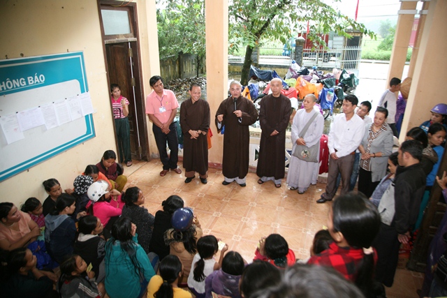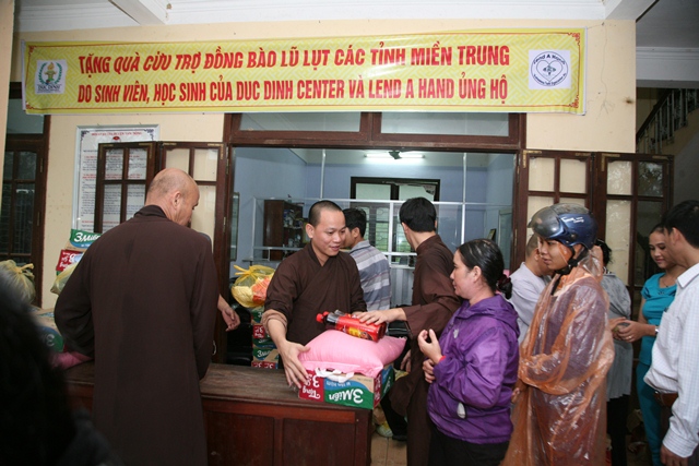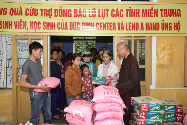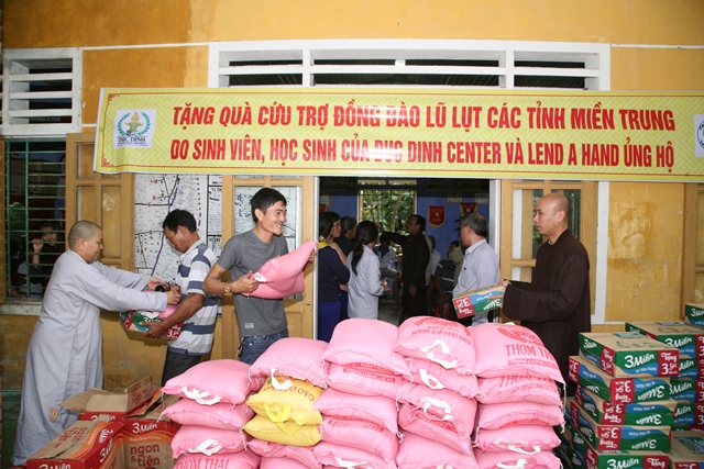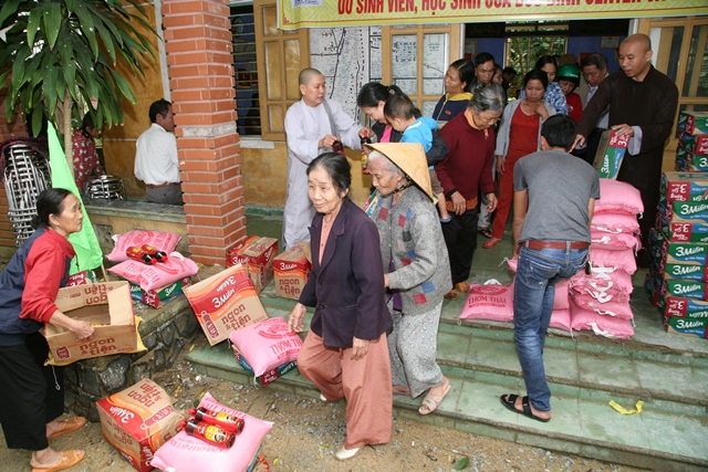 Ngày 15/11, BTS GHPGVN huyện A Lưới do Đại đức Ủy viên Ban Trị sự GHPGVN tỉnh Thừa Thiên Huế, Trưởng Ban Trị sự GHPGVN huyện A Lưới - Thích Tâm Phương; Đại đức Thích Tín Nhơn, Phó Trưởng Ban Thường trực Ban Trị sự; Sư cô Thích Nữ Diệu Trung, Phó Trưởng Ban Trị sự kiêm Trưởng Ban TTXH GHPGVN huyện A Lưới đại diện Phật tử Đinh Trọng Đức và sinh viên, học sinh của Duc Dinh Center và Lend a Hand về thăm và tặng quà cứu trợ đến bà con đồng bào lũ tại thôn Sơn Bồ, xã Phong Sơn, huyện Phong Điền và bà con đồng bào dân tộc thiểu số tại xã Thượng Lộ, huyện Nam Đông, tỉnh Thừa Thiên Huế.
