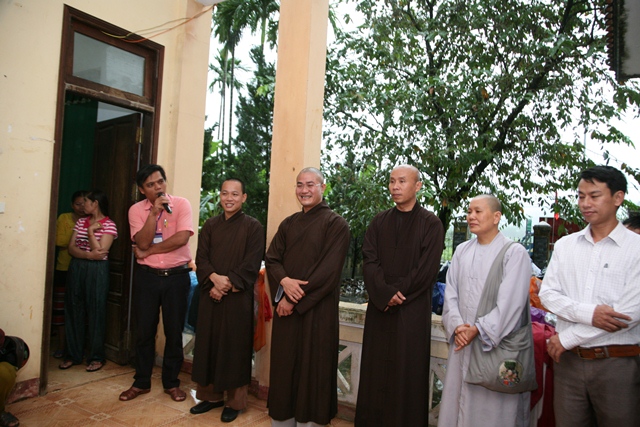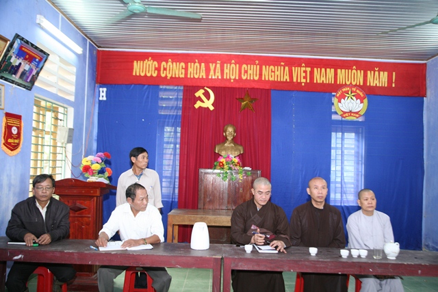 Đại đức Thích Quảng Nguyện, Phó Trưởng Ban Trị sự GHPGVN huyện Nam Đông hướng dẫn và giới thiệu phái đoàn