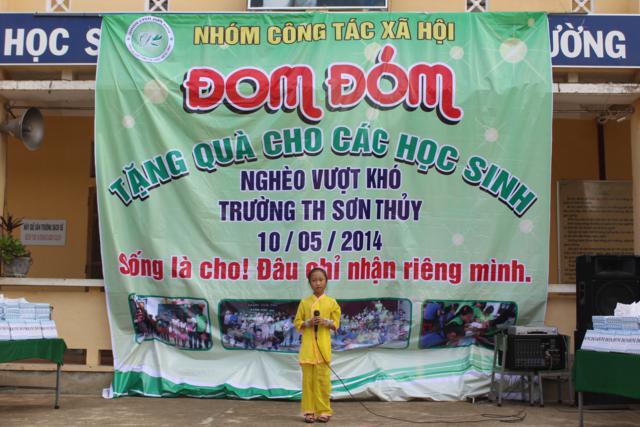 Sáng nay, ngày 12.04 Giáp Ngọ (10.05.2014), Ban Trị sự - Ban Tổ chức Đại lễ Phật đản PL 2558 tại huyện A Lưới, nhóm Thanh niên tình nguyện đã trao tặng 150 phần quà đến đến các em học sinh trường tiểu học Sơn Thủy có hoàn cảnh khó khăn, mang thông điệp yêu thương của đức Thế Tôn đến với những thế hệ tương lai tại huyện nhà.