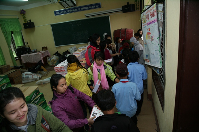 Tại đây, phái đoàn đã trao tặng 265 phần quà (52 triệu đồng), mỗi phần quà trị giá hơn 200.000 đồng nhằm chia sẻ đến các em cái giá rét của mùa Đông vùng cao trong mùa mưa lạnh.