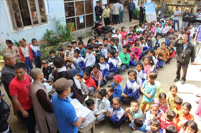 Sáng ngày 15.03.2014 (15.02 Giáp Ngọ), nhân Lễ kỷ niệm ngày Đức Thế Tôn nhập Niết bàn, với tinh thần phụng sự chúng sanh tức cúng dường chư Phật, Đại đức Thích Minh Nhật, trú trì tịnh thất Quảng Duyên, cùng quý Phật tử các quận huyện TP. HCM, Bình Định, Quảng Ngãi, Nghệ An, Hà Nội, đã dành nhiều thời gian quý báu, để về thăm và tặng quà tại huyện vùng sâu vùng xa A Lưới với số tịnh tài, tịnh vật tổng giá trị hơn 80 triệu đồng tại xã Hồng Thủy, Hồng Vân, huyện A Lưới, tỉnh Thừa Thiên Huế, nhằm chia sẻ niềm đau nổi khổ với đồng bào cũng như các em học sinh có hoàn cảnh khó khăn.