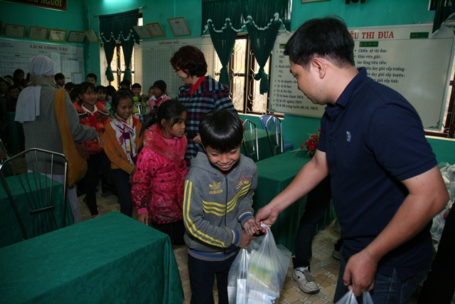Tại các trường, Phái đoàn đã trao tặng 410 phần quà (90 triệu đồng), mỗi phần quà trị giá hơn 200.000 đồng, nhằm chia sẻ cái giá rét của mùa Đông vùng cao trong mùa mưa lạnh.