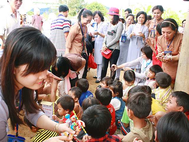 Tại nhà sinh hoạt cộng đồng thôn Chi Lanh, xã A Đớt, huyện A Lưới, Phái đoàn đã trao tặng 200 phần quà (50 triệu đồng), mỗi phần quà trị giá 250.000 đồng, nhằm chia sẻ phần nào khó khăn đối với bà con trong mùa mưa lạnh.