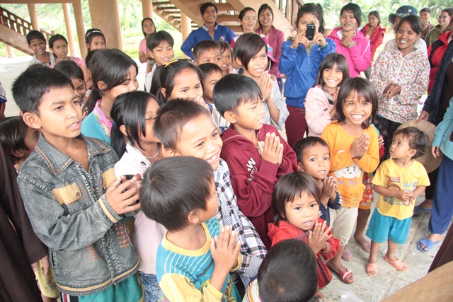 Phát kẹo đến các em thiếu nhi thôn Pa Ay