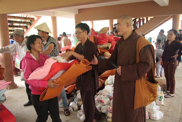 Thay mặt bà con được giúp đỡ, Đại đức Trưởng Ban Trị sự và Ông Hồ Văn Thơm, Phó Chủ tịch UBND xã đã chân thành cảm ơn đến Ni trưởng và chư Ni cùng quý Phật tử chùa Phổ Hiền đã không quản ngại đường sá xa xôi về tại đây thăm và tặng quà cho bà con địa phương, những tặng phẩm này gói trọn tinh thần từ bi cứu khổ của Đức Từ Phụ Thích Ca Mâu Ni Thế Tôn với phương châm phụng sự chúng sanh thiết thực cúng dường chư Phật.