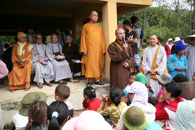Thay mặt bà con được giúp đỡ, Đại đức Trưởng Ban Trị sự và Bà Nguyễn Thị Sương, Phó Chủ tịch UBMT TQVN xã đã chân thành cảm ơn đến Hoà thượng Trưởng phái đoàn và quý Ni trưởng, chư Tôn đức Tăng, Ni, quý Phật tử đã không quản ngại đường sá xa xôi về tại đây thăm và tặng quà cho bà con địa phương, những tặng phẩm này gói trọn tinh thần từ bi cứu khổ của Đức Từ Phụ Thích Ca Mâu Ni Thế Tôn với phương châm phụng sự chúng sanh thiết thực cúng dường chư Phật.
