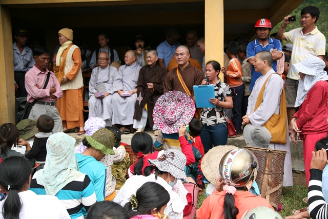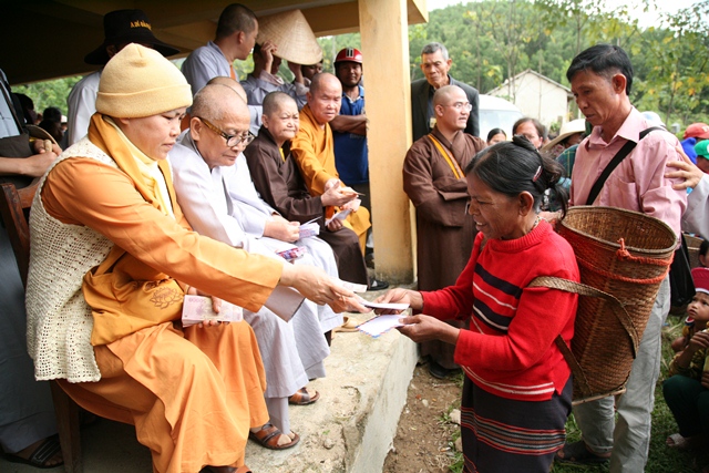 Chư Tôn đức ai nấy đều hoan hỷ khi được thực hiện công tác Phật sự này, đồng thời phái đoàn đã lưu lại dùng cơm thân mật cùng chư Tôn đức tại văn phòng Ban Trị sự GHPGVN huyện A Lưới để tiếp tục công tác từ thiện tại xã Ba Lòng, huyện Đakrông, tỉnh Quảng Trị 15 giờ 30 cùng ngày.