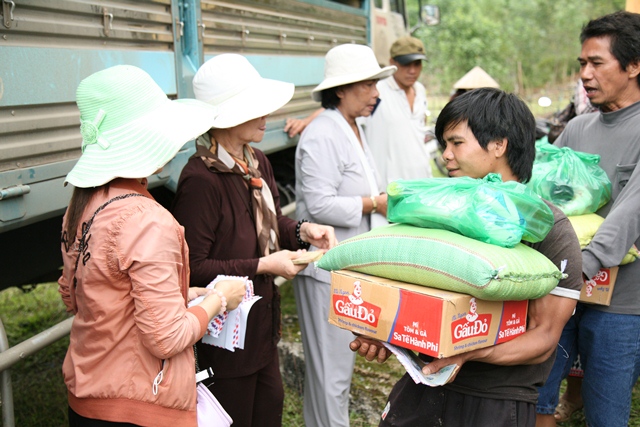 Tại nhà sinh hoạt cộng đồng thôn Tân Hối xã Hồng Bắc, huyện A Lưới, Phái đoàn đã trao tặng 200 phần quà (hơn 140 triệu đồng), mỗi phần quà trị giá hơn 700.000đ, nhằm chia sẻ phần nào khó khăn đối với bà con trong mùa mưa bão sắp đến.