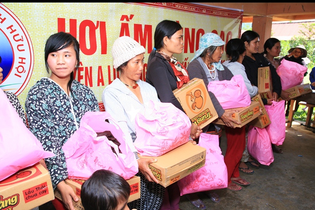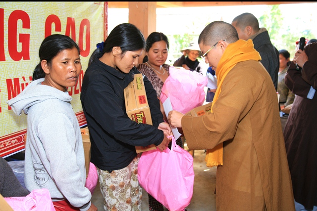 Sáng ngày 27/12/2015 (17.11 Ất Mùi), nhân ngày kỷ niệm khánh đản của Đức Phật A Di Đà, chư Tôn đức Tăng Ni và quý Phật tử Liên sanh hữu hội đã về tại nhà sinh hoạt cộng đồng thôn Loa, xã Đông Sơn, huyện A Lưới trao tặng 200 phần quà đến bà con đồng bào có hoàn cảnh khó khăn.