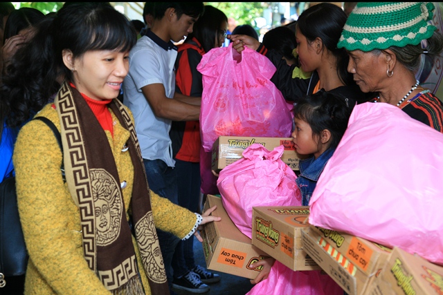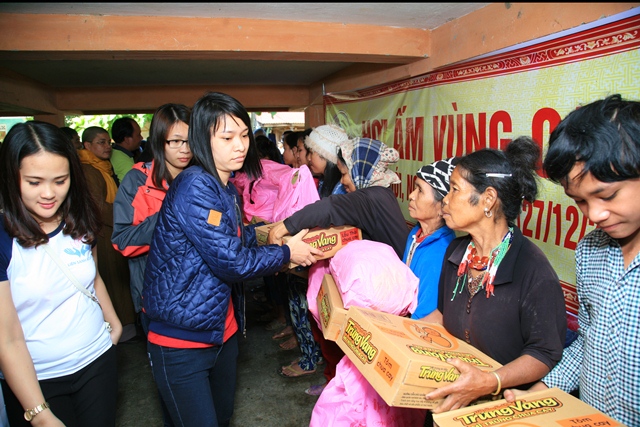 Phái đoàn đã trao tặng 200 phần quà đến với bà con, mỗi phần quà trị giá 300 ngàn đồng nhằm giúp đỡ phần nào khó khăn trong cuộc sống, đối phó với màu giá rét đang hoành hành tại miền Trung thân yêu. Tổng trị giá chuyến từ thiện lần này gần 60 triệu đồng đến với đồng bào dân tộc thiểu số tại xã Đông Sơn, huyện A Lưới.