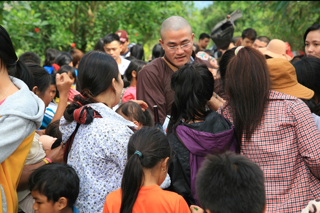 Tại buổi phát quà, Đại đức Thích Vân Du (chùa Từ Vân) đã chia sẻ những tình cảm của chư Tôn đức và Phật tử luôn hướng về đồng bào nghèo có hoàn cảnh khó khăn tại Đông Sơn là xã có số lượng người nhiễm chất độc da cam nhiều nhất tỉnh. Có đến 20% người dân trong xã nghi nhiễm dioxin, từ các cháu nhỏ đến thanh niên với triệu chứng liệt, teo chân, ngực nổi u...”.