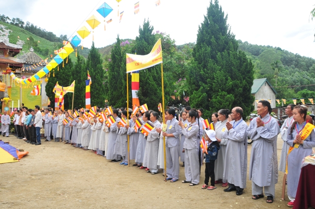 Lễ chính thức đã diễn ra trong không khí trang nghiêm, linh thiêng và thành kính, ba hồi Chuông Trống Bát Nhã được cử lên, nghi thức cúng dường của buổi lễ được bắt đầu dưới sự chủ trì của Thượng tọa Thích Trí Đăng, Giáo phẩm chứng minh Ban Trị sự GHPGVN huyện A Lưới.