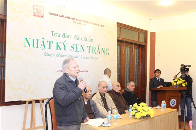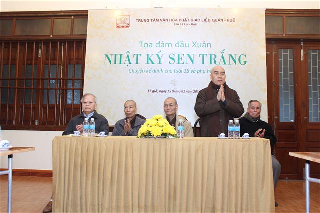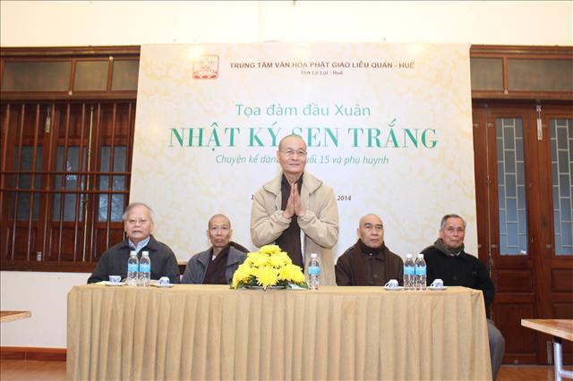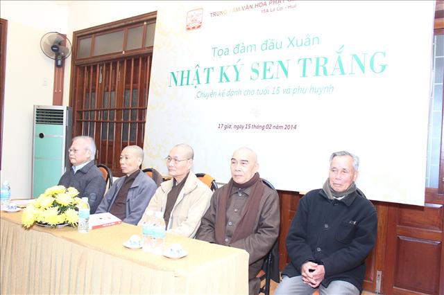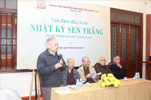 Chiều nay, lúc 17 giờ ngày 15.02.2013 (16.01 Giáp Ngọ), tại Trung tâm Văn hóa Phật giáo Liễu Quán, số 15 A, đường Lê Lợi, thành phố Huế, đã diễn ra buổi tọa đàm đầu xuân chủ đề Nhật ký Sen Trắng (Chuyện kể cho tuổi 15 và phụ huynh), do Giáo sư Cao Huy Thuần chủ tọa.