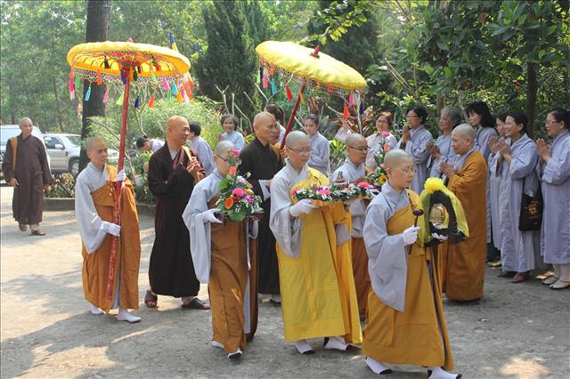 Tại buổi lễ, Trưởng lão Hòa thượng Thích Đức Phương ban đạo từ, Hòa thượng khuyến tấn Môn đồ pháp quyến thực hành theo tâm nguyện Tôn sư, phụng đạo giúp đời, luôn xứng đáng là người con gái của Đức Từ phụ Thích Ca Mâu Ni.
