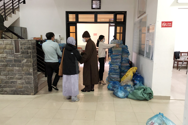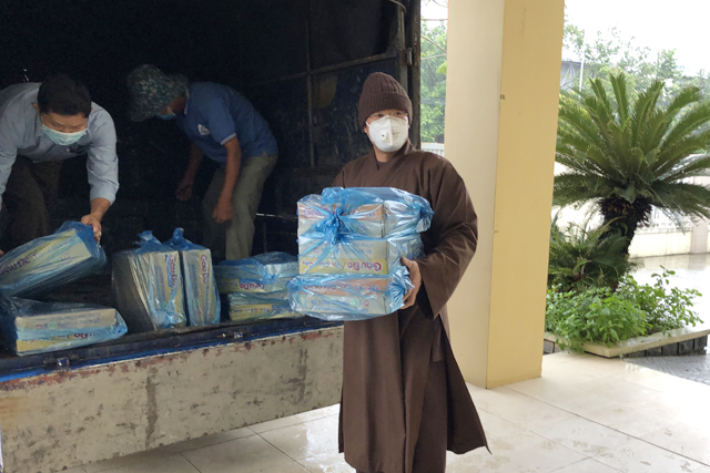 Đoàn đã trao tặng các hộ dân và các đồng chí trực chốt tại khu vực phong toả, cách ly xã hội ở khu phong tỏa Cồn Hến, phường Vỹ Dạ, thành phố Huế 100 phần quà, mỗi phần quà trị giá gần 300 nghìn đồng bao gồm gạo, mỳ và một số nhu yếu phẩm khác. Của ít, lòng nhiều thể hiện tình thần từ bi của đạo Phật, động viên bà con vượt qua lúc khó khăn do đại dịch Covid-19.