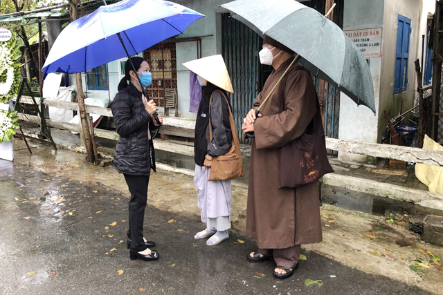 Chiều ngày 09 tháng 11 năm 2021, Ban Trị sự GHPGVN huyện A Lưới do Đại đức Thích Tâm Phương, Trưởng Ban Trị sự; Sư cô Thích Nữ Liên Hiếu, Trưởng ban Kinh tế - Tài chánh đã về tại chốt phong tỏa Cồn Hến, phường Vỹ Dạ, thành phố Huế nhằm thăm hỏi, động viên hỗ trợ lực lượng tuyến đầu chống dịch, bà con trong khu phong tỏa.