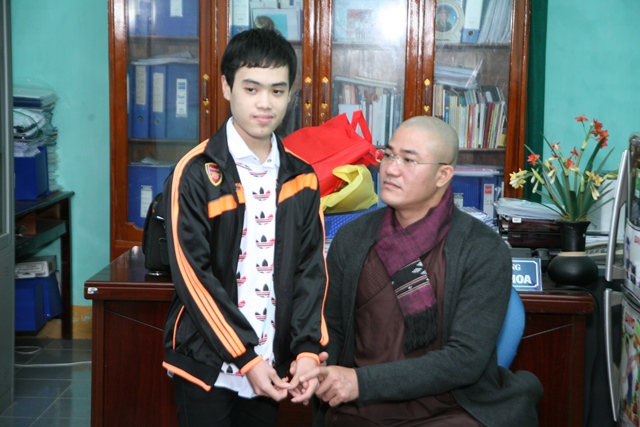 trao máy tính laptop và học bỗng đến em Trần Ngọc Bình