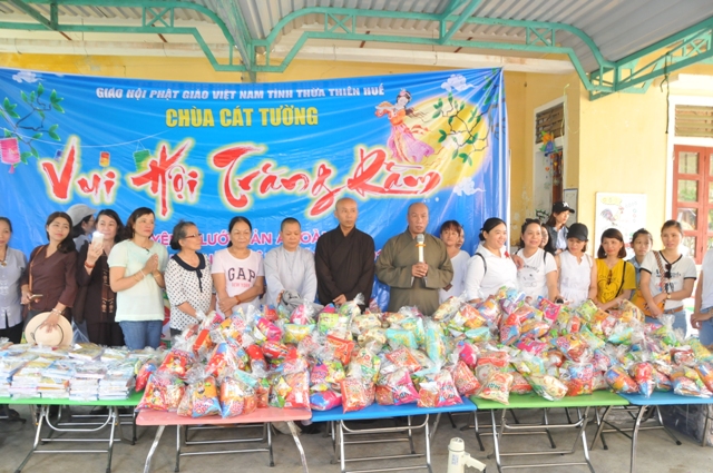 Thay mặt Ban Trị sự Đại đức Thích Tín Nhơn đã gửi lời tri ân sâu sắc đến Đại đức Thích Huyền Diệu và phái đoàn đã luôn thương tưởng đến các cháu thiếu nhi còn nhiều khó khăn ở huyện miền núi A Lưới để các cháu có được mùa Trung thu vui tươi và hạnh phúc.
