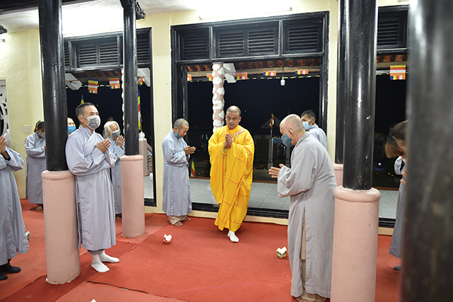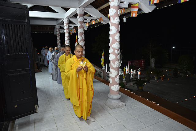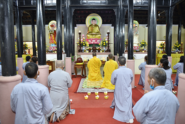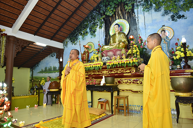 Đại đức Thích Thiền Ngộ niêm hương bạch Phật, cử hành Nghi lễ Thành đạo