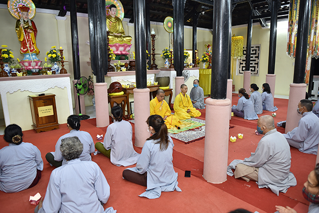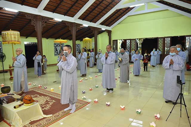 Chư Tôn đức và Quý Đạo hữu đồng nhất tâm cầu nguyện cho pháp giới đa sanh phụ mẫu, lụy thế tôn thân quyến thuộc, anh linh chư Thánh Tử đạo, các anh hùng liệt sĩ, chiến sĩ trận vong, các bậc tiền bối hữu công, các Đạo hữu hội viên sáng lập, gia trưởng, huynh trưởng đoàn sinh GĐPT các niệm Phật đường và thiện tín ân nhân quá cố được an lành trong ánh hào quang của chư Phật; đồng cầu nguyện cho tổ quốc vinh quang, đạo pháp trường tồn, thế giới hòa bình, chúng sanh an lạc, dịch bệnh Covid-19 được sớm tiêu trừ, những bệnh nhân tử vong vì dịch bệnh sẽ được siêu sanh Phật quốc.