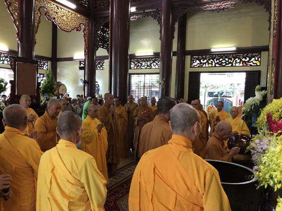 Tại buổi lễ, HT.Thích Quang Nhuận, Giáo phẩm chứng minh BTS GHPGVN tỉnh Thừa Thiên Huế cử hành nghi lễ cúng ngọ; chư Tôn đức Tăng Ni môn phái tổ đình Tường Vân (TP.Huế) và môn đồ pháp quyến, Phật tử, thiện tri thức trang nghiêm hộ niệm.