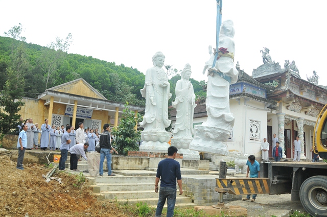Sau gần 1 tháng chú tạo, đến nay pho tượng Đức Bồ tát Đại Thế Chí (chiều cao 5,2 m, đường kính 1,6 m tại cơ sở đá mỹ nghệ Hùng Lan, địa chỉ: Khu làng nghề - lô 44, 45, đường Trương Gia Mô, thành phố Đà Nẵng. ĐT. 0911.511.189) đã thập phần viên mãn đúng với thời gian mà chư Tôn đức ấn định.