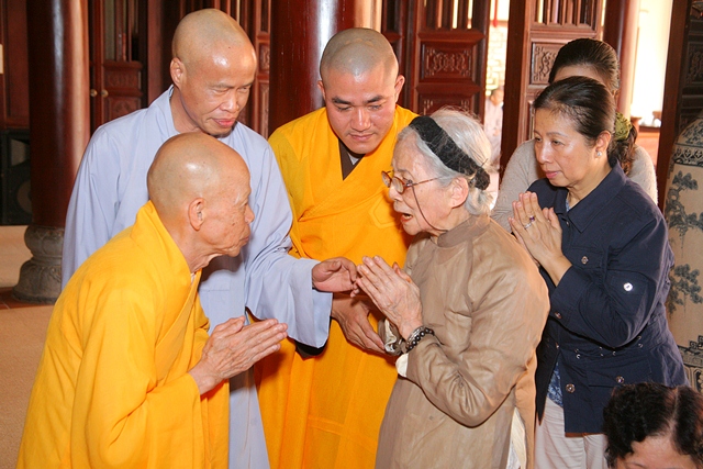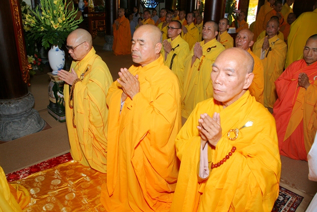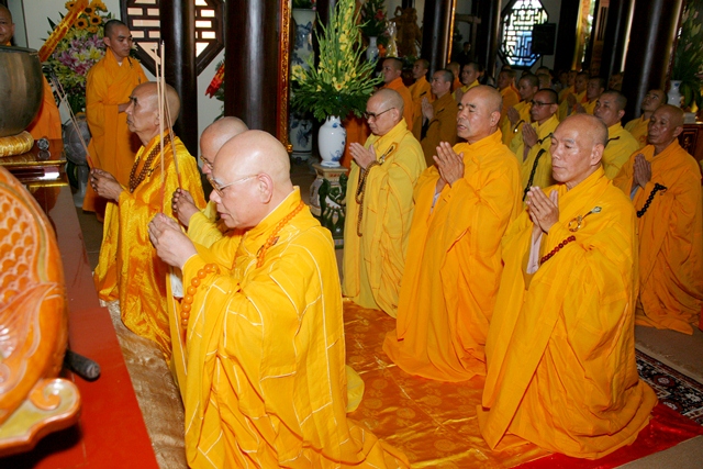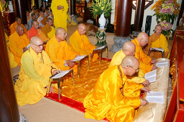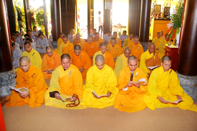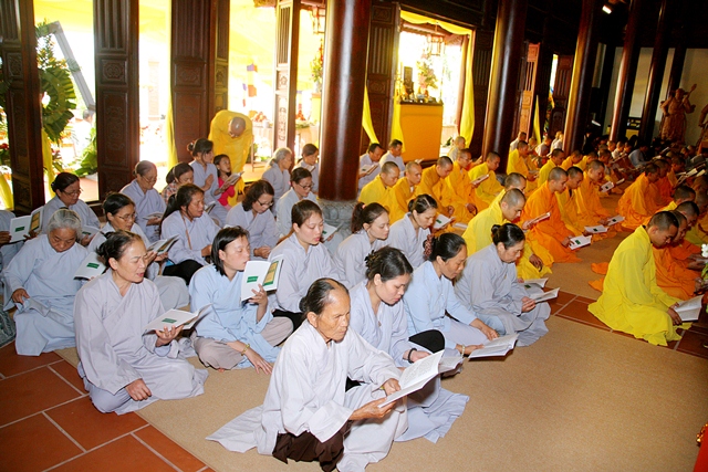 Chư Tôn đức trong Sơn môn pháp phái Tường Vân đúng 14 giờ cử hành thời khóa tụng kinh Di Giáo, tụng đọc lại lời dạy sau cùng của Đức Phật lúc sắp Niết bàn để nhắc nhở mỗi vị tự nổ lực tinh cần tinh tấn trên lộ trình tu thân hành thiện. Sau khóa tụng kinh Di Giáo là Lễ cúng thí âm linh cô hồn, cầu nguyện Âm siêu dương thái.