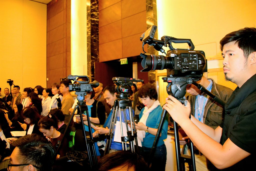 Các phóng viên, báo, đài tác nghiệp tại buổi họp báo