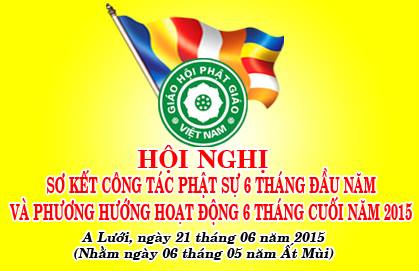 Tại huyện A Lưới, Ban Trị sự sẽ tổ chức Hội nghị Sơ kết công tác Phật sự năm 2015 và chương trình hoạt động 6 tháng cuối năm 2015 tại huyện nhà như sau: